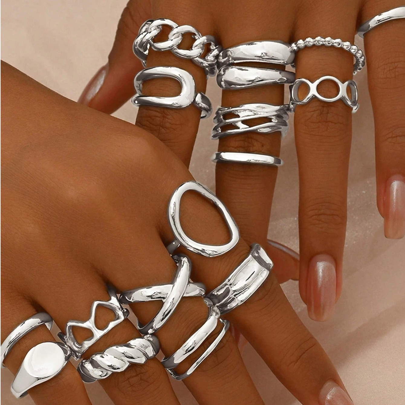 This ring set is nice and trendy. It’s lightweight and comfortable, plus it looks elegant. A great choice for adding a unique touch to my outfit.