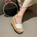 Hemp rope platform wedge slippers