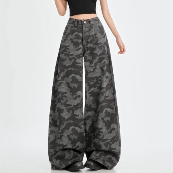 Retro camouflage workwear wide-leg pants