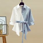 10 reviews for Striped shirt high waist jeans two-piece set
