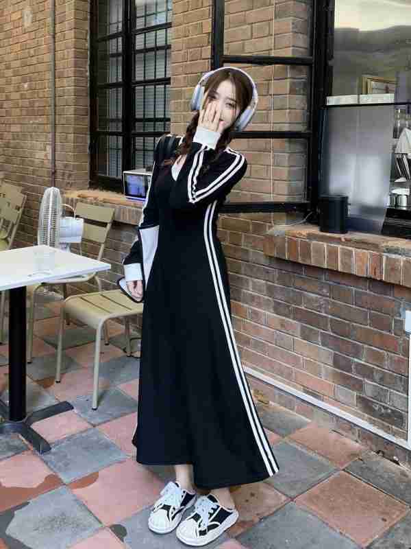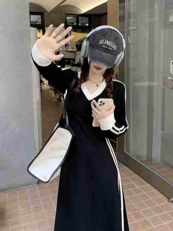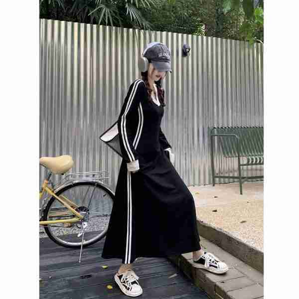 ชุดเดรสยาวแขนยาวรัดเอว