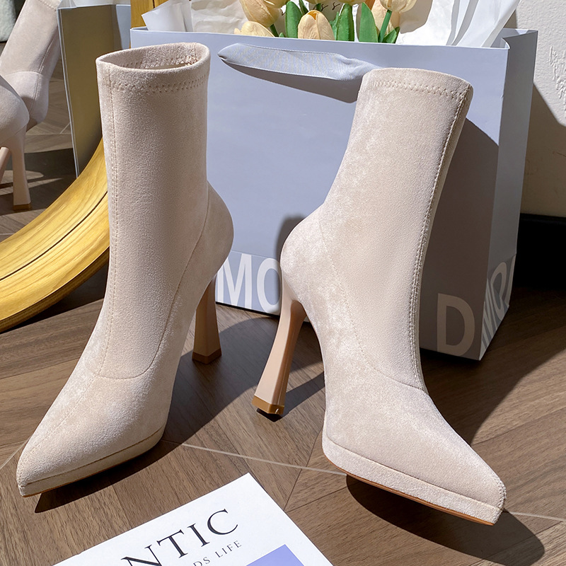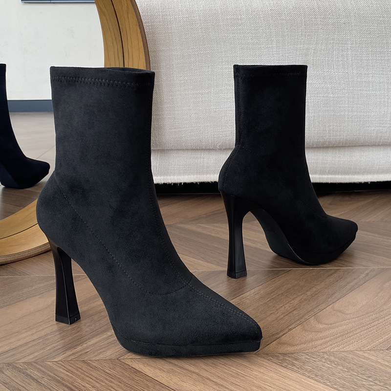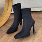 I really love these boots! They fit my feet perfectly and the stretch material makes them so comfortable to wear all day. Plus, the black high heel adds a touch of elegance to any outfit. Highly recommended for girls who want to look chic and feel comfy!