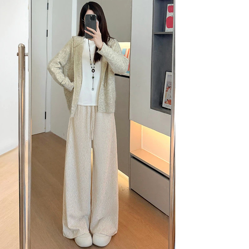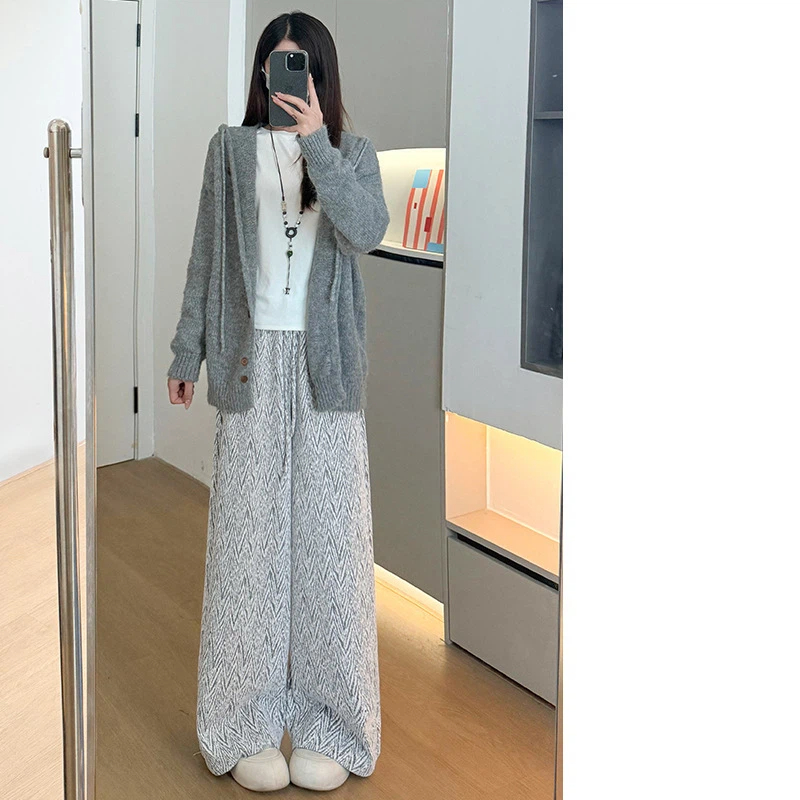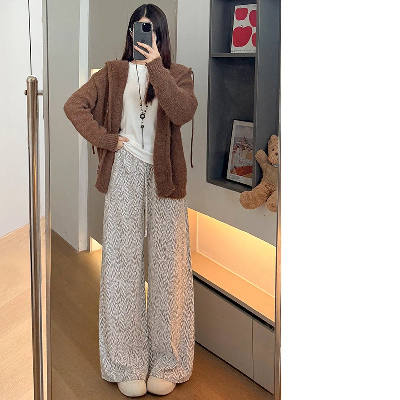 Herringbone loose wide-leg pants