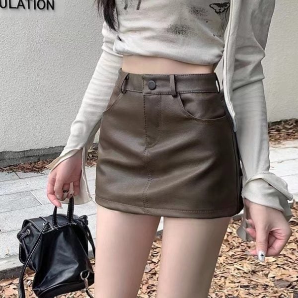 High waist PU leather pantskirt