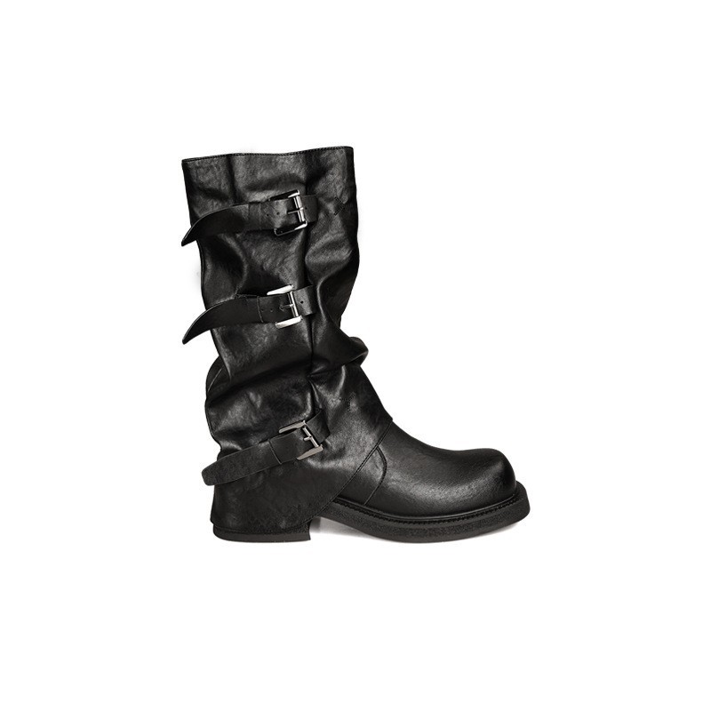 Pleated belt buckle boots