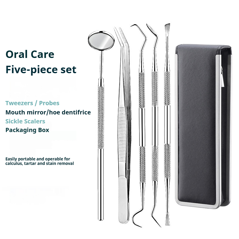 This stainless steel tooth tool set is super helpful sa pag-aalaga ng ngipin ko! Ang ganda ng quality at matibay ang mga kasangkapang ito. Hindi na ako mag-aalala sa mga problema sa ngipin ko dahil sa gamit na ito. Salamat talaga!