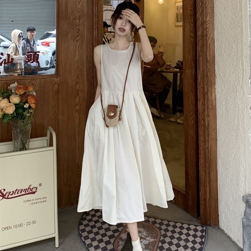 ชุดเดรสสีขาวแขนกุด Tea break