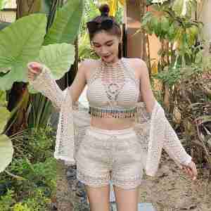 Knitted hollow-out suit