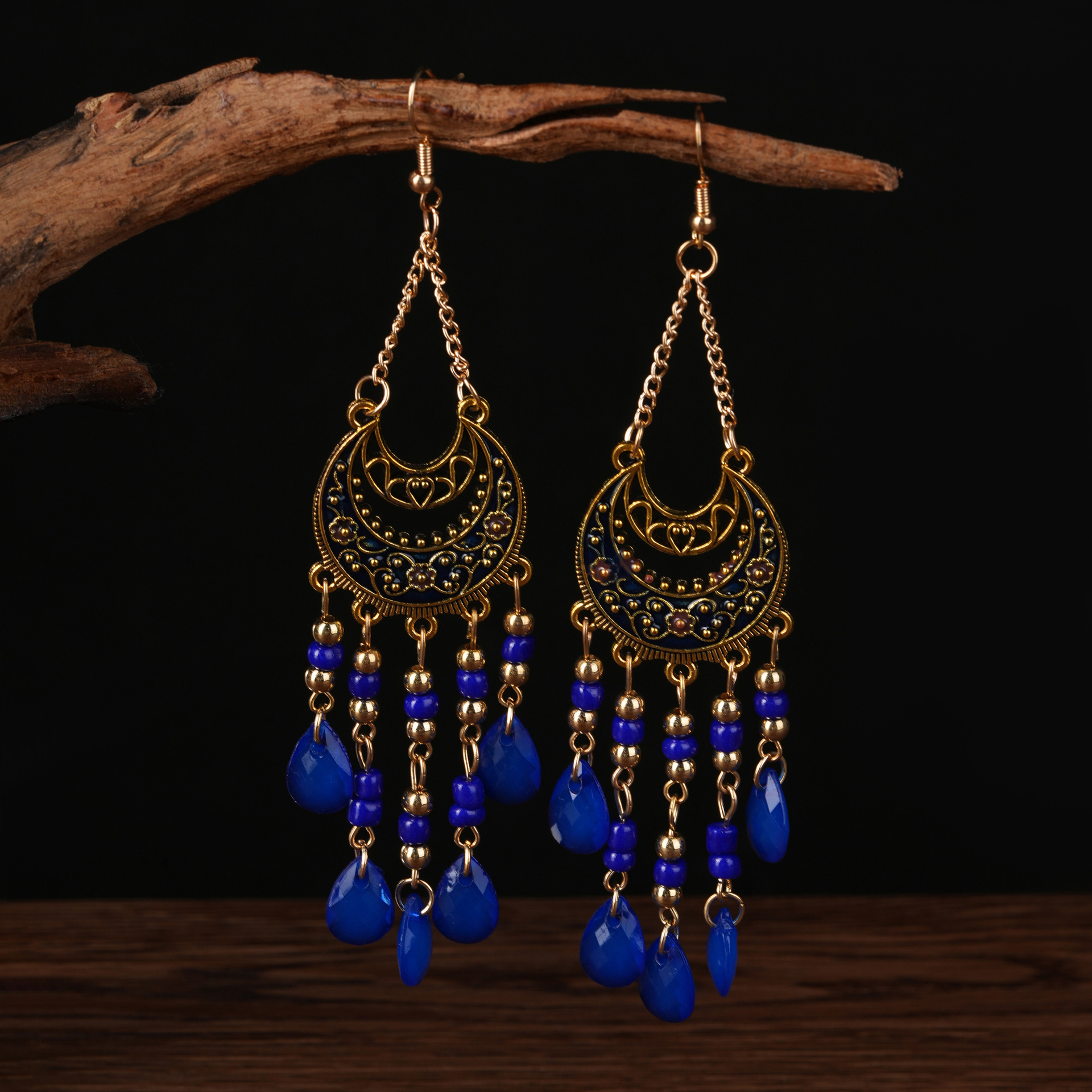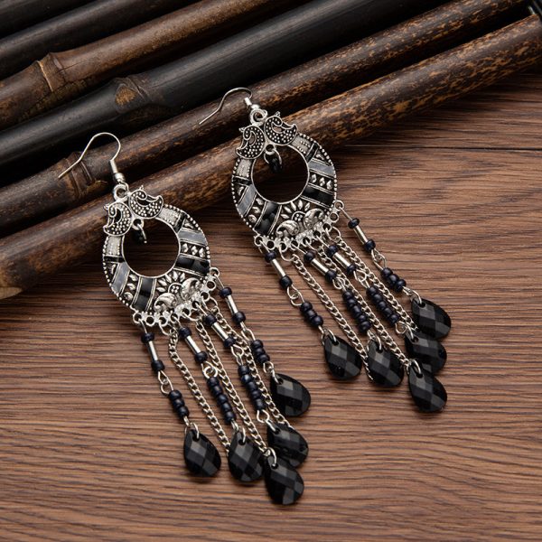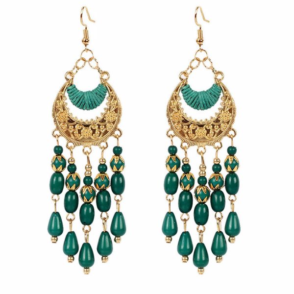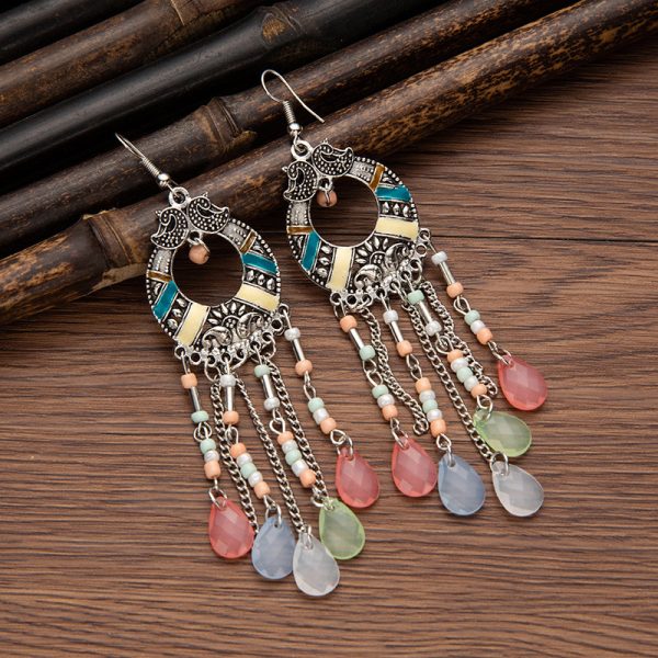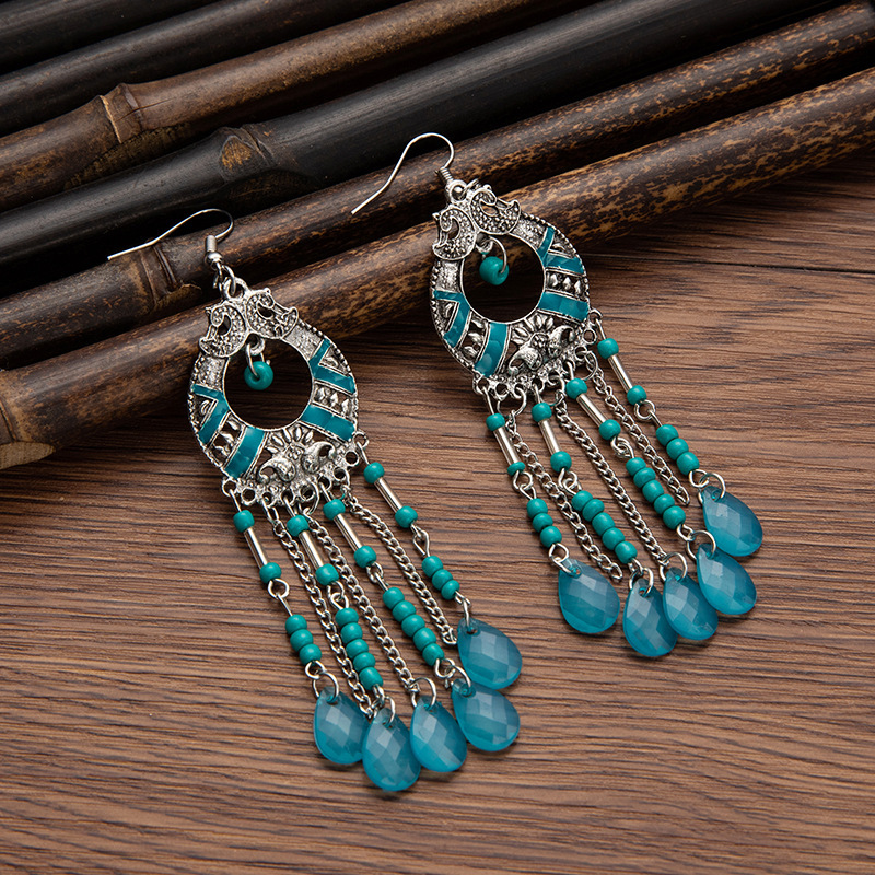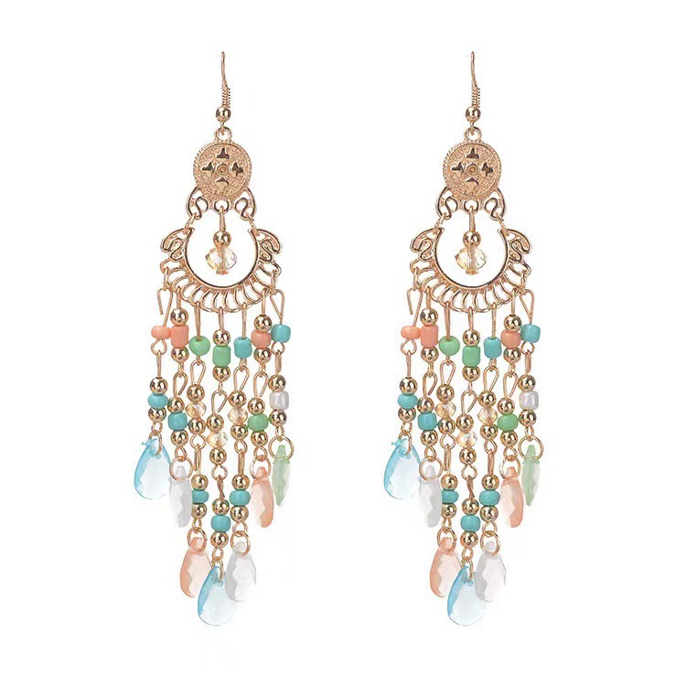 Bohemian water drop beads tassel earrings