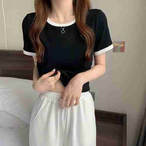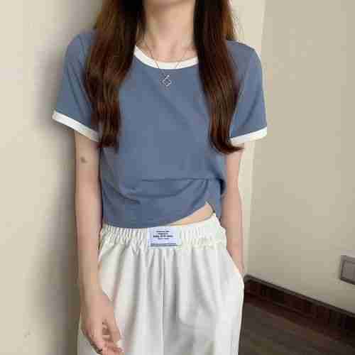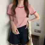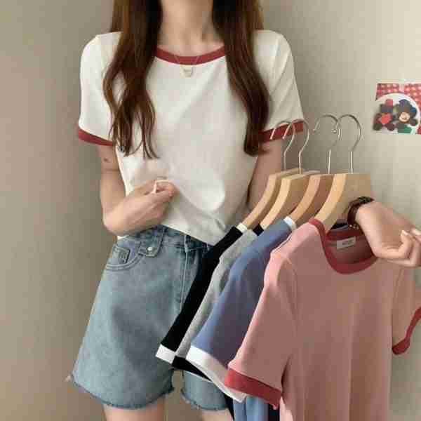 Mga review ng 2 para sa Contrast color round neck short sleeve t-shirt