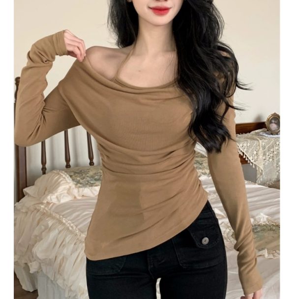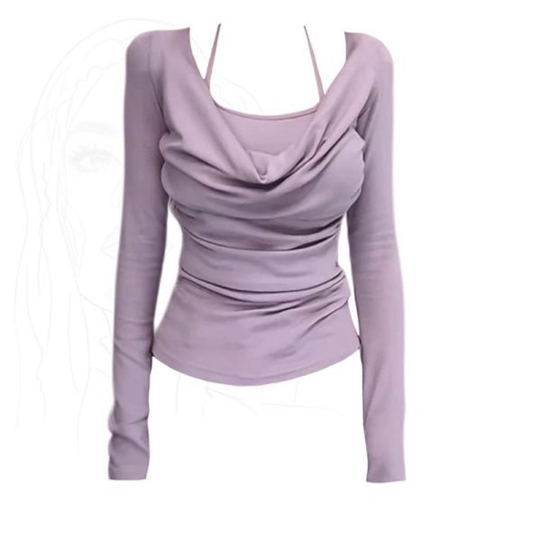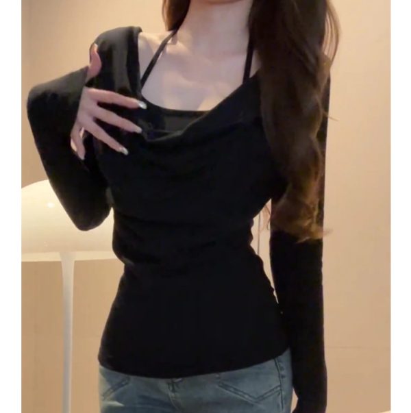Halter fake two-piece long-sleeved top
