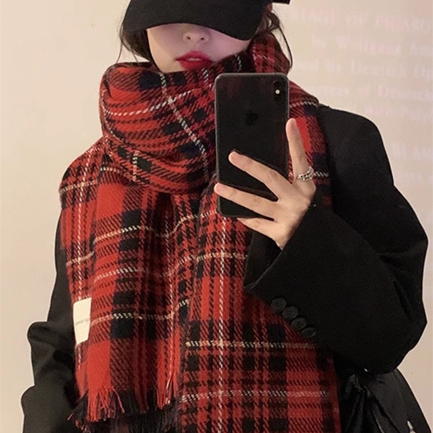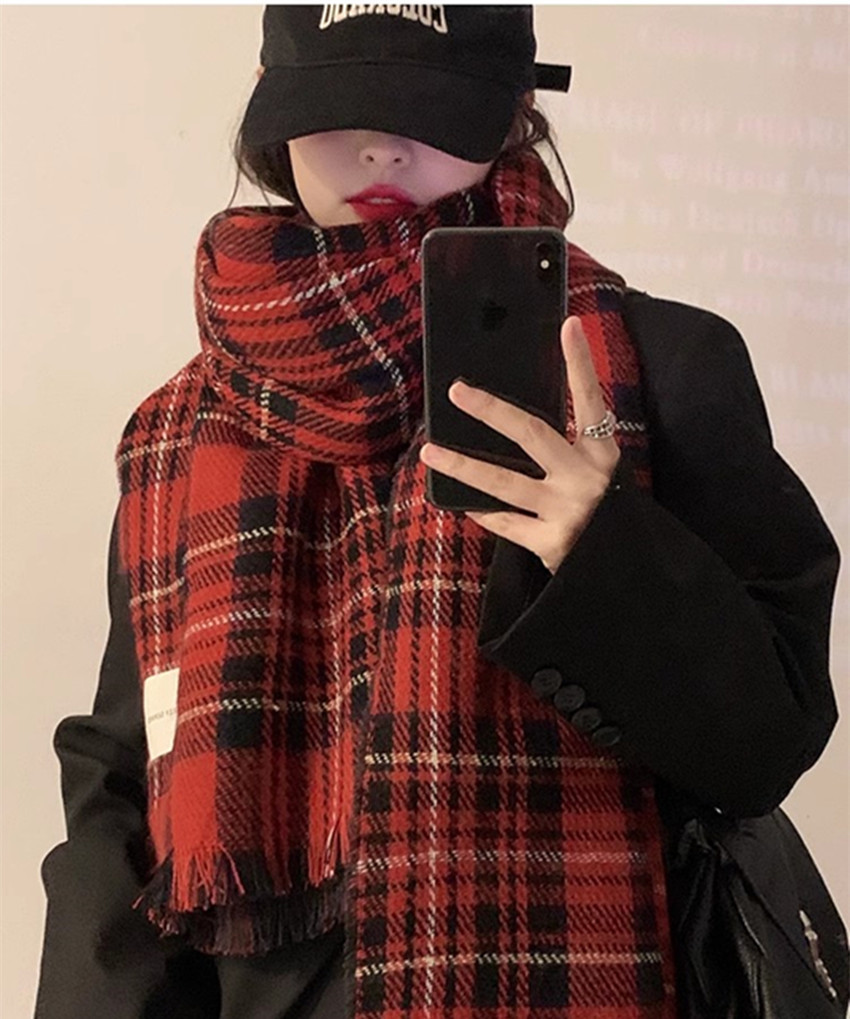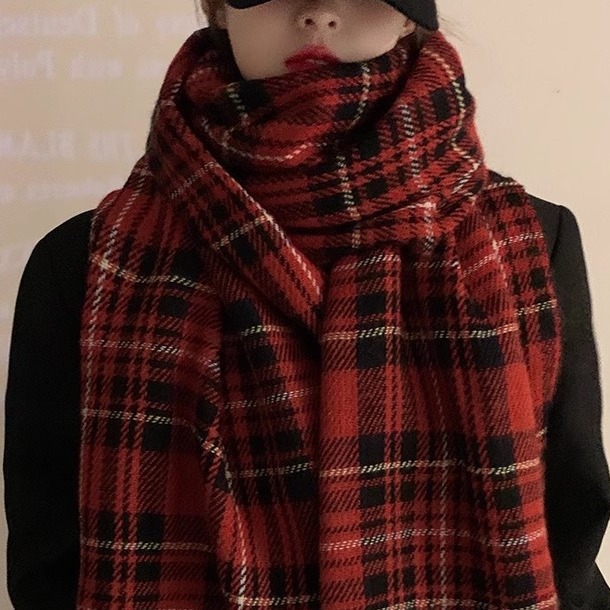 Mga review ng 9 para sa Plaid cashmere-like red scarf