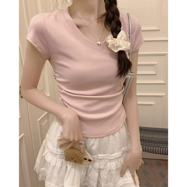 Mga review ng 2 para sa Pleated waist tight shoulder short sleeve