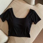 Mga review ng 2 para sa Solid color shoulder square collar short sleeve (with chest pad)