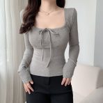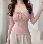 This square collar bow lace-up top is a real head-turner with its elegant details. I feel like a princess whenever I wear it. It’s incredibly comfortable and perfect for both formal events and casual outings.