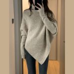 I really love this sweater! The turtleneck keeps me warm, and the irregular hem adds a trendy touch. It’s cozy and looks great with jeans or skirts. Definitely a stylish and comfortable addition to my wardrobe!