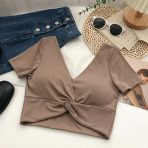 Mga review ng 2 para sa Twisted V-neck top with chest pad
