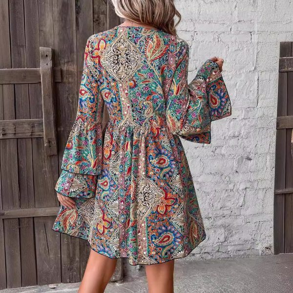 Flower V-neck flared sleeves dress کے لیے 1 جائزہ