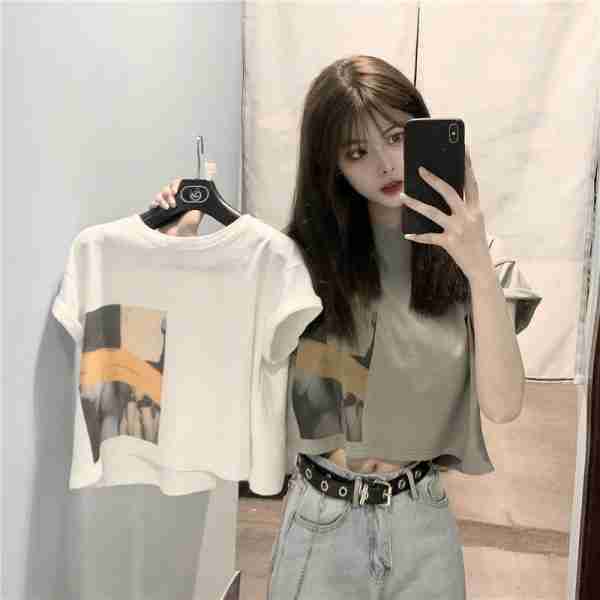 کوریائی سٹائل ڈھیلا پیٹرن ٹی شرٹ