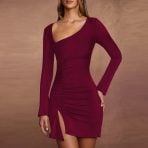 This dress is absolutely stunning! The diagonal collar adds a unique touch that sets it apart from other dresses. The long sleeves are perfect for cooler evenings, making it versatile for any occasion. I can’t wait to wear this to my next event!