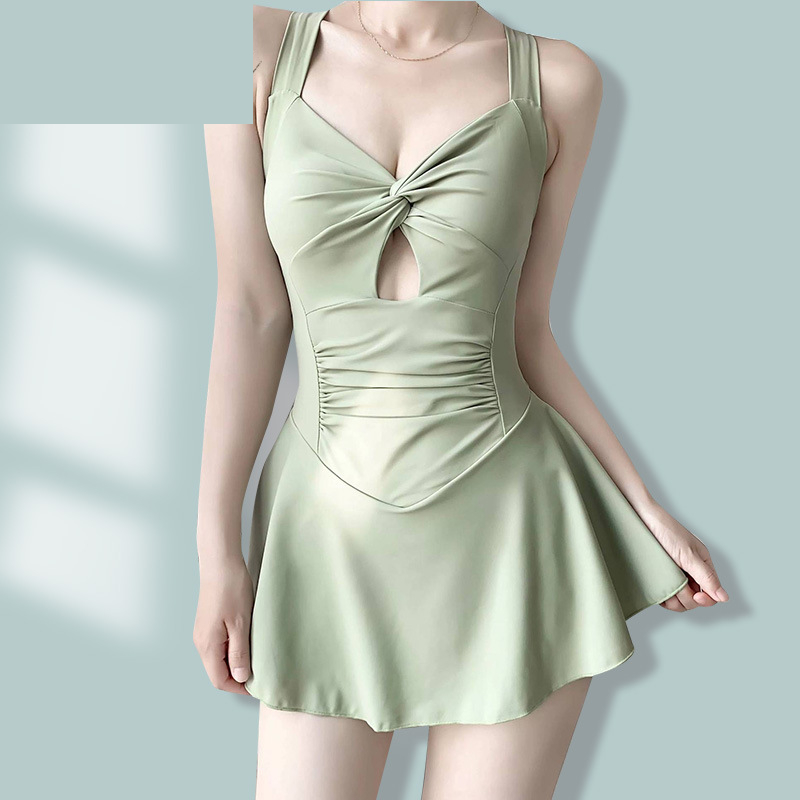 Solid color waist tight dress swimsuit کے لیے 1 جائزہ